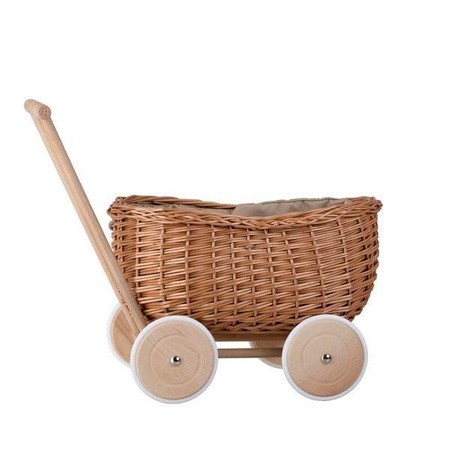 Handcrafted from ecological wicker, this wide and deep toy trailer is perfect for storing and pushing around blocks, plushies, or whatever else needs a ride. With solid wooden wheels and a smooth handle, it’s built for hours of pretend play.